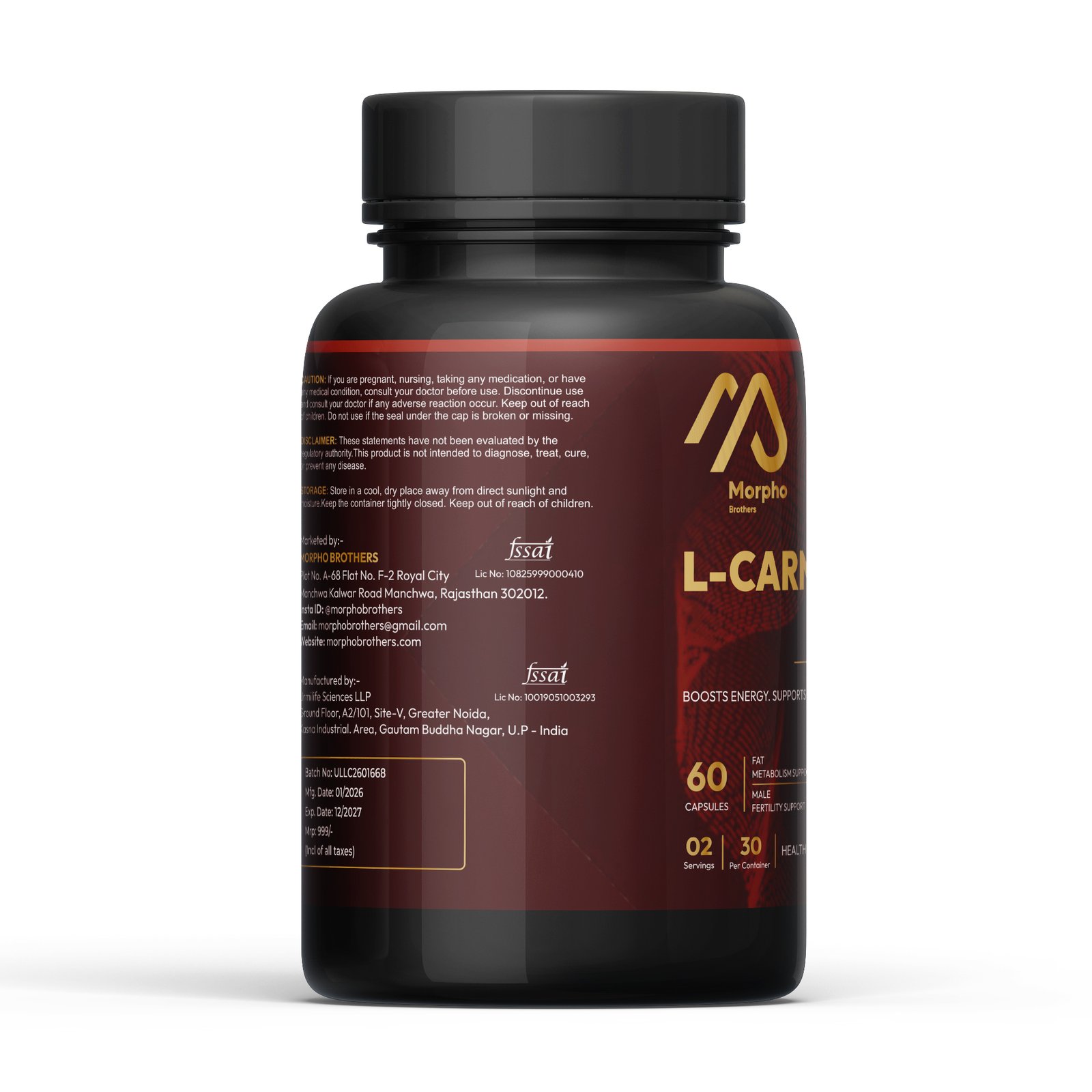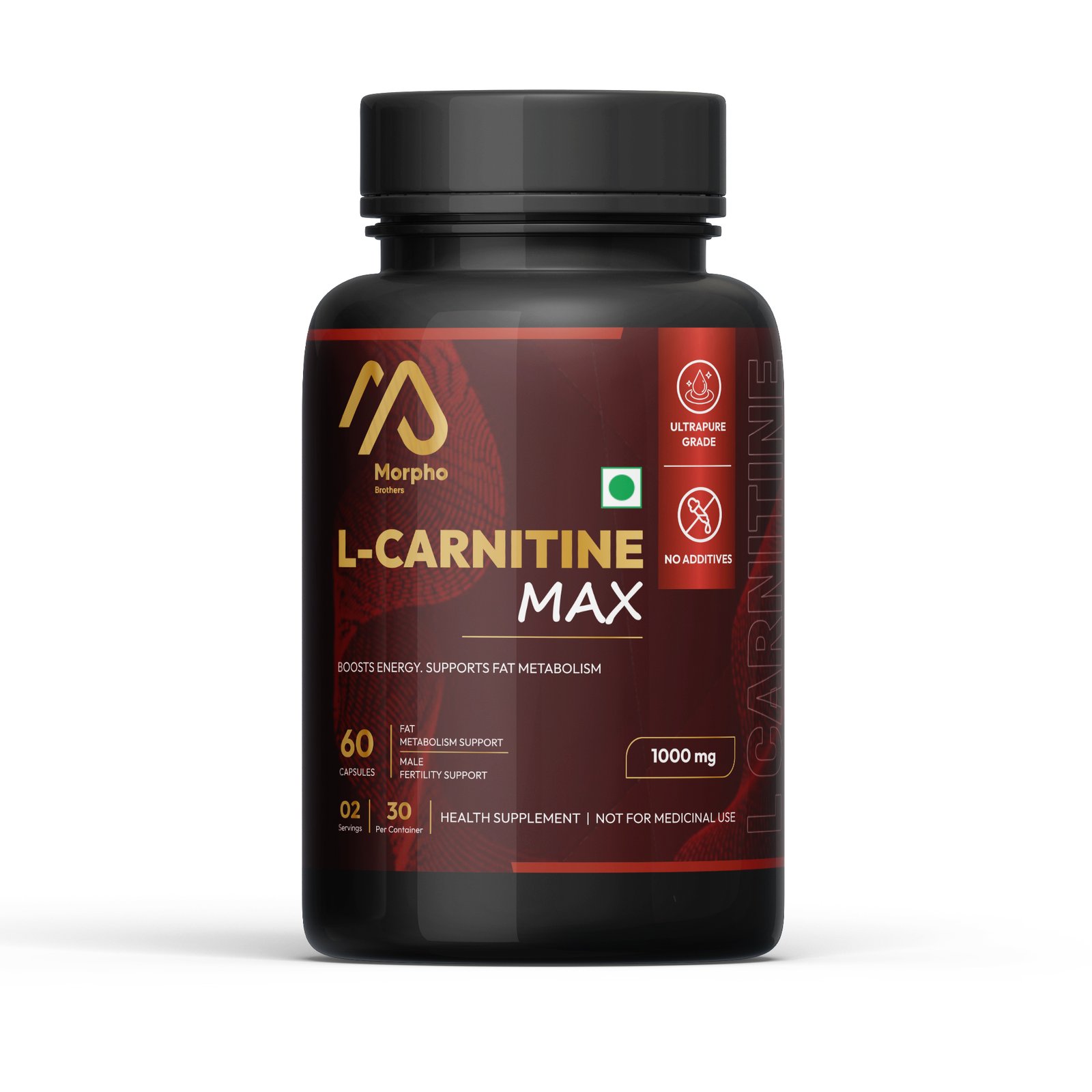 Morpho Brothers L-Carnitine 1000mg Capsules are a premium quality dietary supplement designed to support fat metabolism, enhance energy levels, and improve physical performance. L-Carnitine plays a vital role in converting stored fat into usable energy, helping boost endurance, stamina, and workout efficiency. This ultra-pure, additive-free formula is ideal for athletes, fitness enthusiasts, and individuals seeking healthy weight management and improved daily performance.